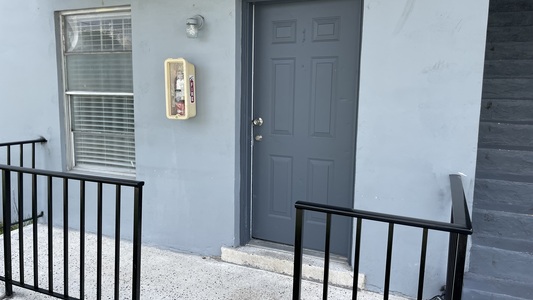 The apartment is located on the ground floor of a multi-family complex but is not wheelchair accessible (2 steps are needed to enter the unit).