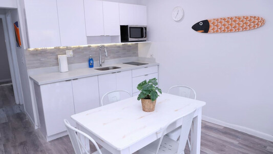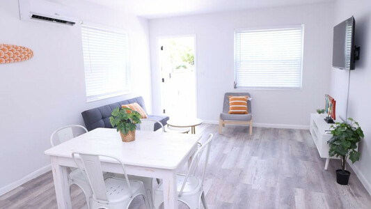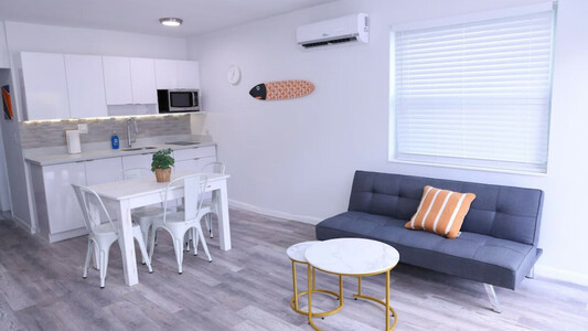 Beautiful and renovated 1 bedroom/1 bath apt with sofa bed, kitchen, and living room.