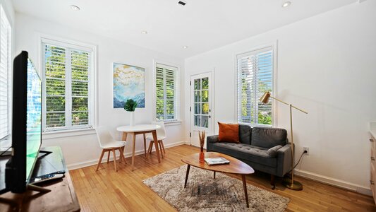 Upper-level one-bedroom apartment with balcony in a renovated historical landmark in the heart of Coral Gables. There is free street parking half a block away from the house (do not park over the house block).