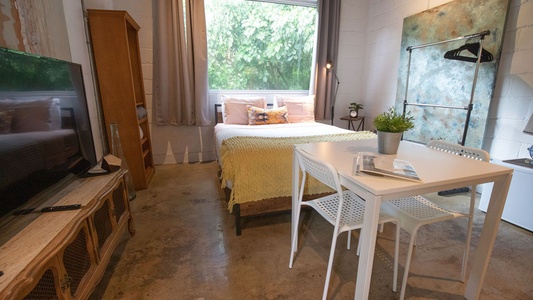 Ground-level studio in a renovated historical landmark in the heart of Coral Gables. There is free street parking half a block away from the house (do not park over the house block).