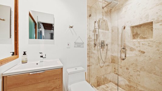House remodeled for Airbnb rentals, divided into six studio apartments. You will stay in one of the studios. The house is divided into two buildings.