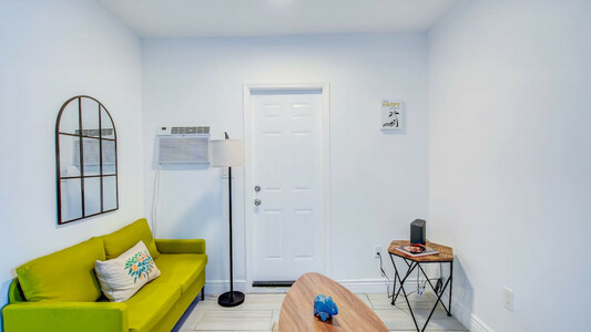 This 1-bedroom unit, featuring a queen bed and a smart TV, is perfect for your short stay. Enjoy a fully equipped kitchen with a stove, oven, microwave, and utensils. The unit is located on the first floor, offering easy accessibility. Parking on the premises is shared with other units; if occupied, there's free street parking nearby.