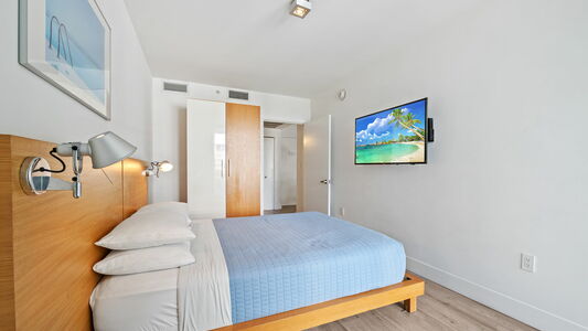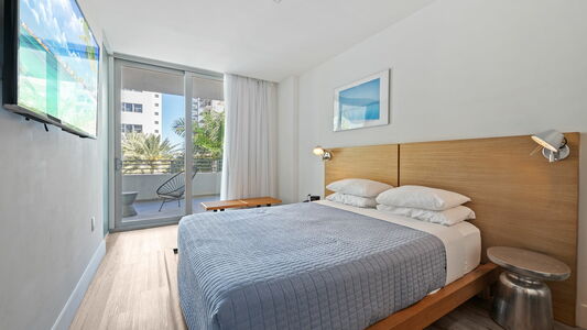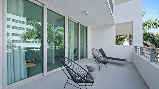 For your beach days, we provide two beach chairs and one umbrella, allowing you to fully enjoy Miami Beach just steps away. The unit also includes a full bathroom and modern finishes throughout for a comfortable and relaxing stay.