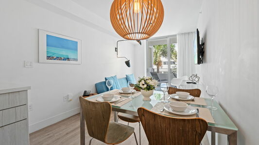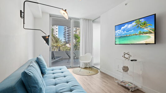 Stay in this brand-new 1-bedroom apartment just 1 block from Miami Beach, perfect for vacations. Located in the modern 6080 building, this stylish unit features a fully equipped kitchenette, an in-unit washer&dryer, a comfortable sofa bed, a private balcony, and two Smart TVs for ultimate comfort.