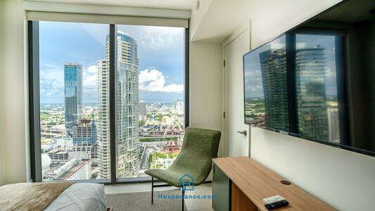 Looking for the ultimate Miami getaway? This stunning 1-bedroom luxury condo offers the perfect mix of comfort and sophistication. Situated in the heart of Miami, just minutes from the best restaurants, nightlife, and beaches. Spacious & Stylish for up to 4 guests. State-of-the-Art Kitchen: Fully equipped with top-of-the-line appliances. building with a gym, an outdoor swimming pool & and a bar. SPA is available at extra cost. Book now and experience Miami in total luxury! This is a one-bedroom apartment with a fully equipped kitchen, one bathroom with tub and shower, one sofa bed in the living room, and a spacious balcony with incredible views. Equipped with a washer and dryer in the unit. Please let us know how many guests will be staying so we can provide you with the essentials. A $35 per-day resort fee, paid upon check-in, is mandatory. $56 Valet parking per day is optional. (A paid parking lot one block away from the building charges $24 per day or $6 per hour. ) Check-in is between 3:00 pm and 7:00 pm. We will meet you at the door. Please let us know your ETA with anticipation to expedite check-in. The front desk will charge $35 per day per unit and hand keys to the unit. If you wish to check in between 7:00 p.m. and 11:00 p.m., an extra $30 will be charged for late check-in. For check-ins after 11 pm, an additional cost of $100 will be applied. Late check-ins after 11:00 PM are subject to prior approval and will incur an additional fee, as they require special coordination outside of regular staffing hours. We are allways available by DM, phone & SMS