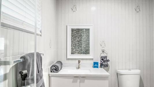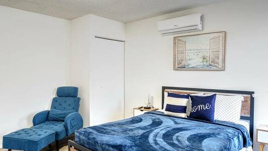Disfrute de una cocina totalmente equipada, una acogedora sala de estar con sofá cama y Smart TV, una cama queen-size con un segundo televisor y un moderno baño con ducha a ras de suelo. Incluye una plaza de aparcamiento gratuita y acceso a lavandería compartida de pago. Perfecto para parejas o viajeros que buscan comodidad, estilo y ubicación en uno de los mejores barrios de Miami.