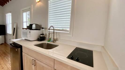 Estudio de un dormitorio en una casa histórica renovada con la cocina totalmente equipada y con lo básico para cocinar. Ubicado en el corazón de Coral Gables!