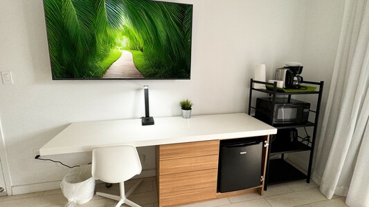 • Cafetera, microondas y frigobar. Para mayor comodidad, el estudio incluye artículos esenciales como toallas y ropa de cama.