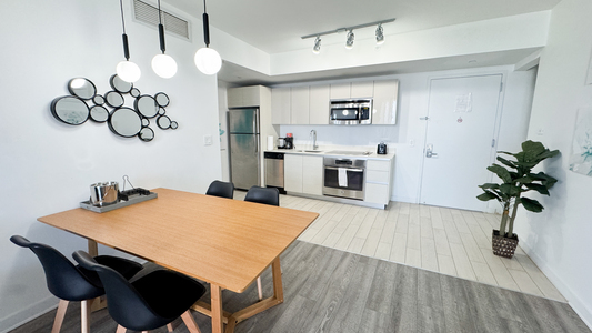 Este apartamento de 2 habitaciones y 2 baños incluye un dormitorio principal con cama king, un segundo dormitorio con 2 camas full, 2 baños amplios y WiFi privado.
