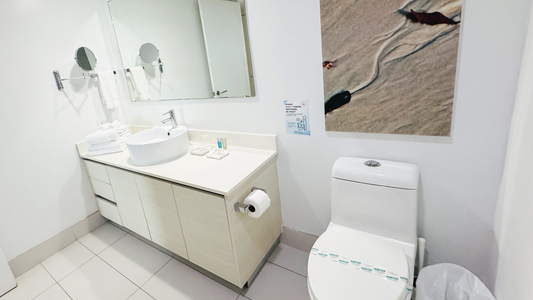 Uso del inodoro: solo papel higiénico. No desechar toallas femeninas, toallitas u otros objetos. Multa de hasta USD 150.